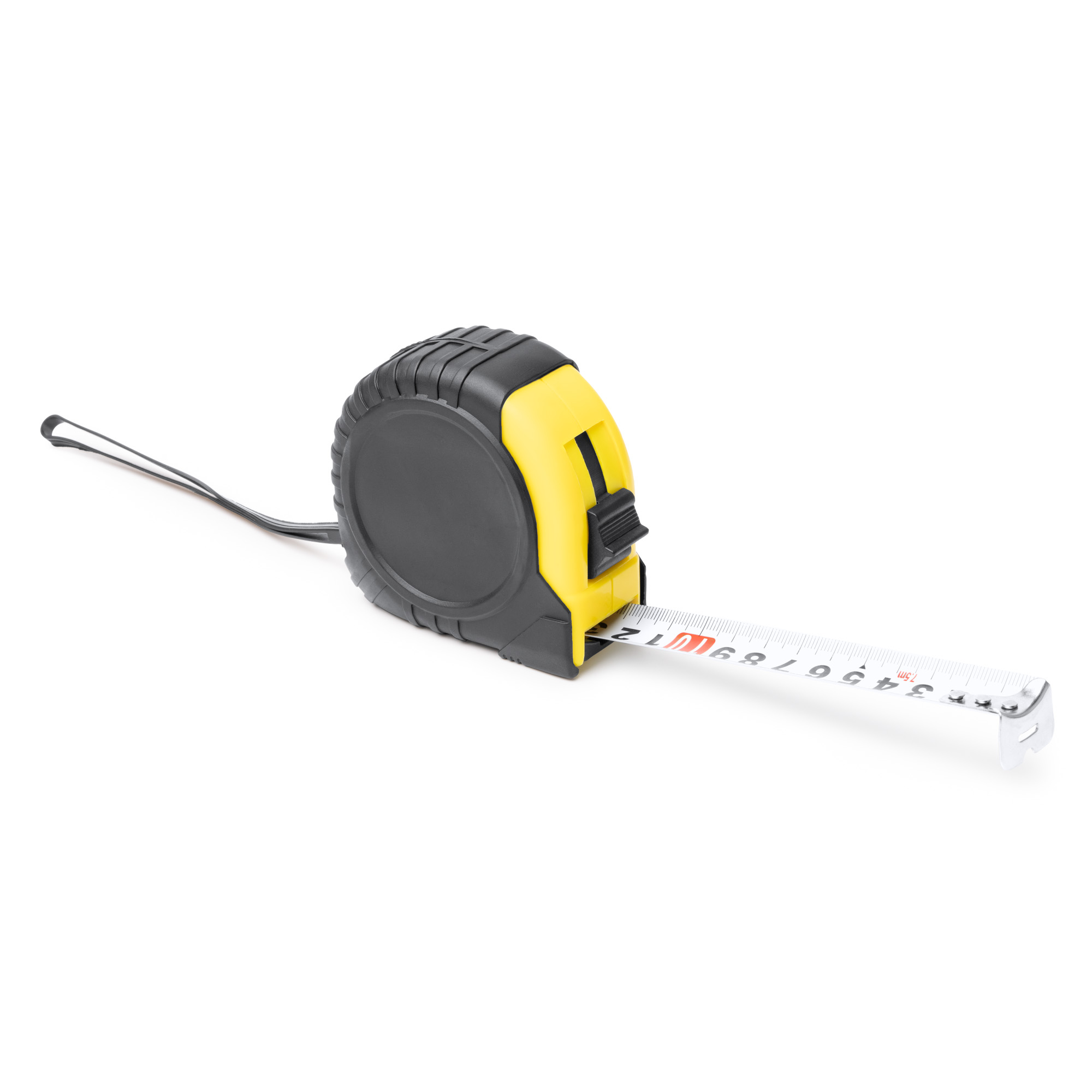 Flexómetro de 7,5 metros homologado. Con mecanismo de bloqueo y cuchilla metálica. Con funda de goma en color, clip metálico y cinta de transporte.