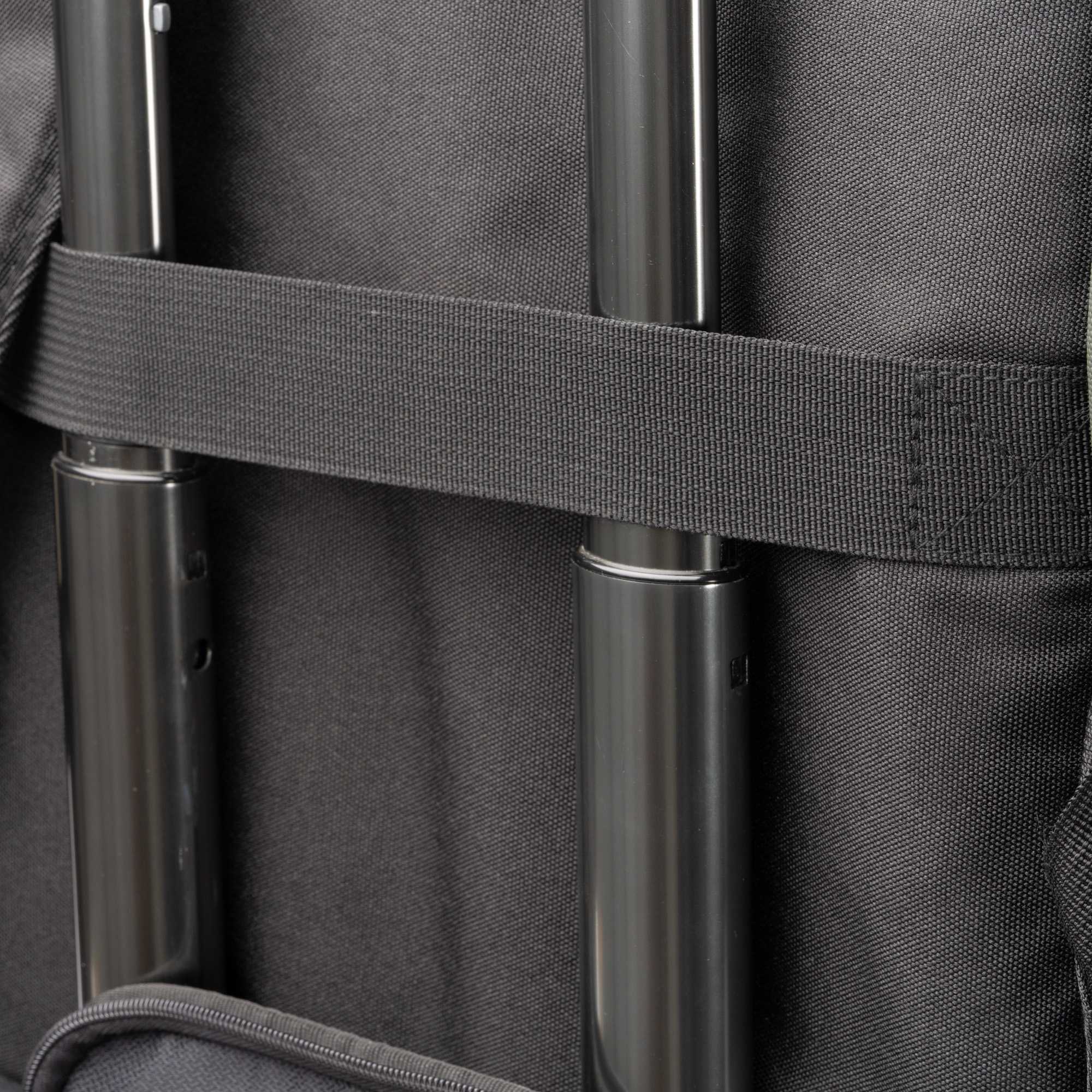 Mochila elaborada en PU Leather y poliéster 600D con un gran compartimento principal forrado en su parte superior, cierre de cremallera y un un bolsillo interno con ajuste elástico para el transporte de un ordenador portátil de hasta 16″. Cuenta con un bolsillo invisible exterior en su parte frontal, además de seis puntos de anclaje en el lateral. Sus cintas laterales de ajuste permiten adaptar la mochila a su contenido y la cinta para Trolley la convierten en una opción cómoda y versátil en su uso. Espalda y asas van acolchadas.