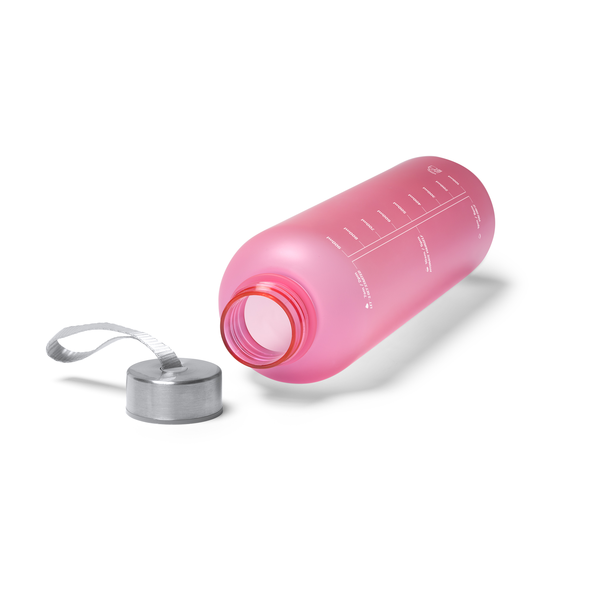 Bidón de PCTG con cuerpo translúcido, con capacidad para 1L. Cuenta con tapón con cierre a rosca y asa de transporte integrada en él. Incorpora recomendación de hidratación e indicador de capacidad en el cuerpo. Una opción práctica, ligera y funcional.
