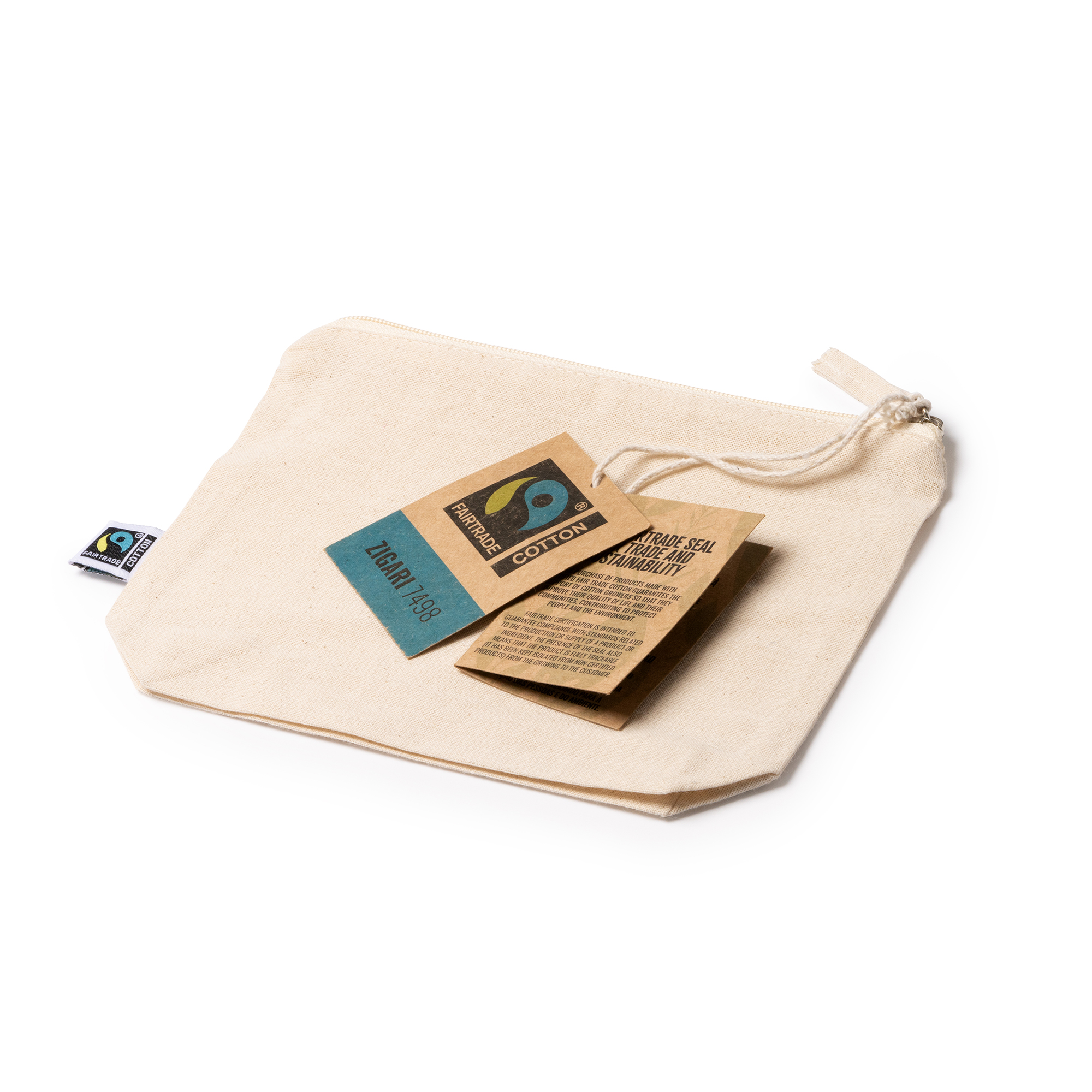Neceser multiusos 100% algodón Fairtrade de 180 g/m². Bolsillo principal con cremallera y tirador a juego. Neceser idóneo de uso diario o para viajes.