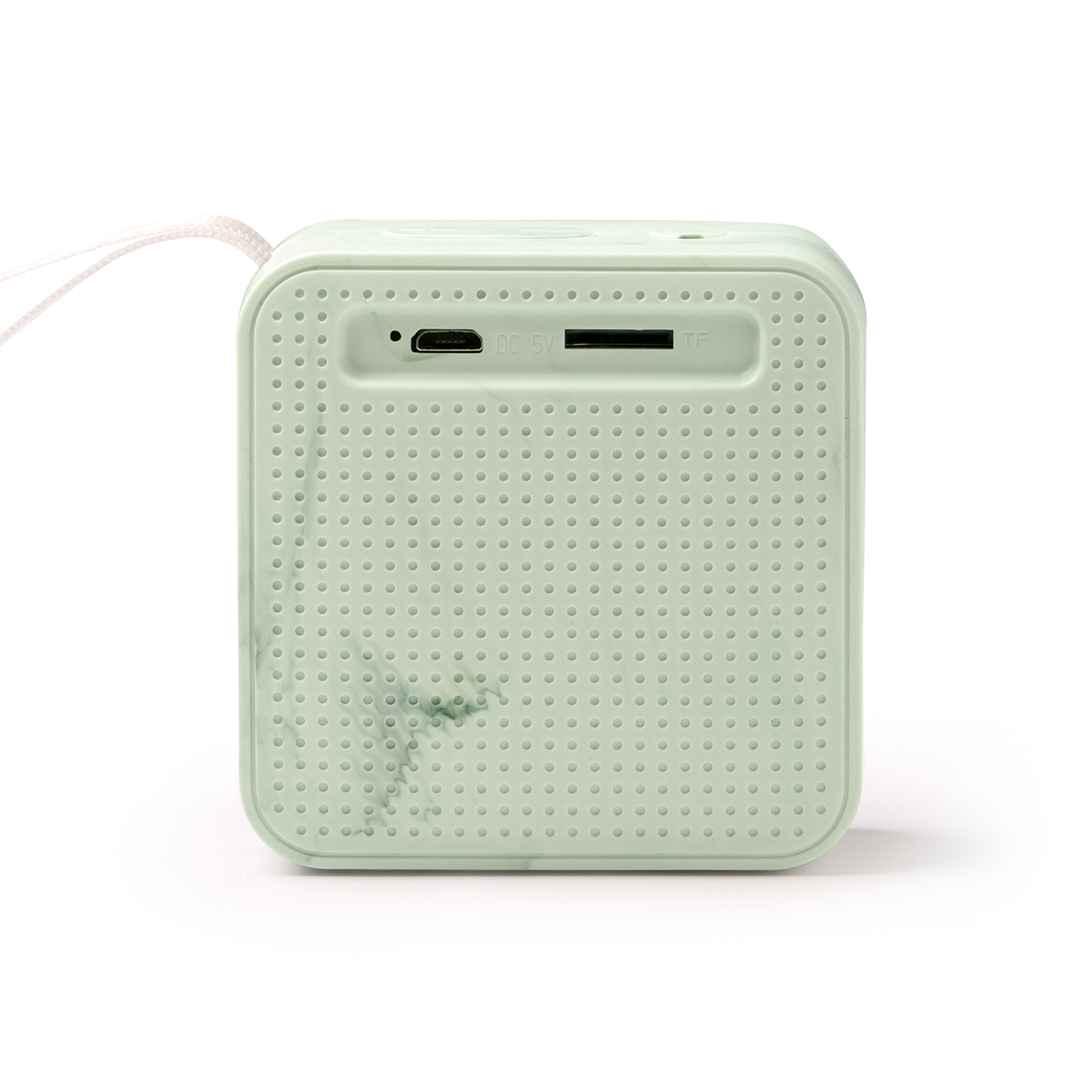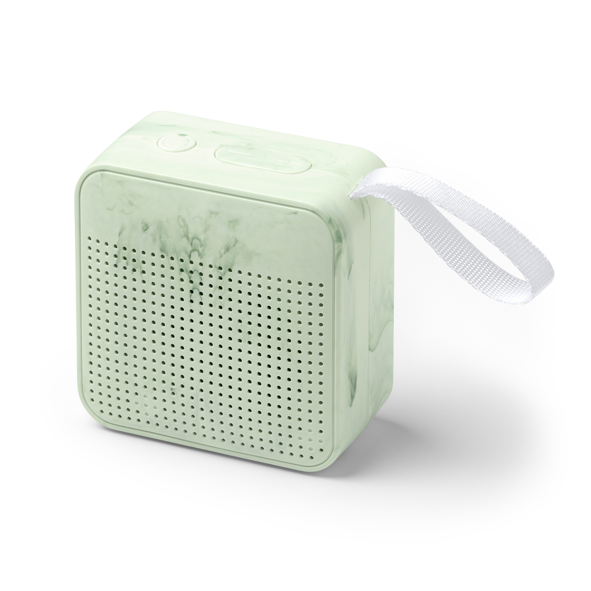 Altavoz inalámbrico recargable realizado a partir de materiales reciclados: cuerpo a partir de tapones de botella y asa de transporte en poliéster RPET. Potencia de 3W. Función manos libres, con micrófono para realizar llamadas. Reproducción de contenido a través de tarjeta Micro SD o a través de conexión Bluetooth. Reproducción continua de hasta 5 horas y distancia de funcionamiento hasta 10 metro. Indicador LED de conexión.